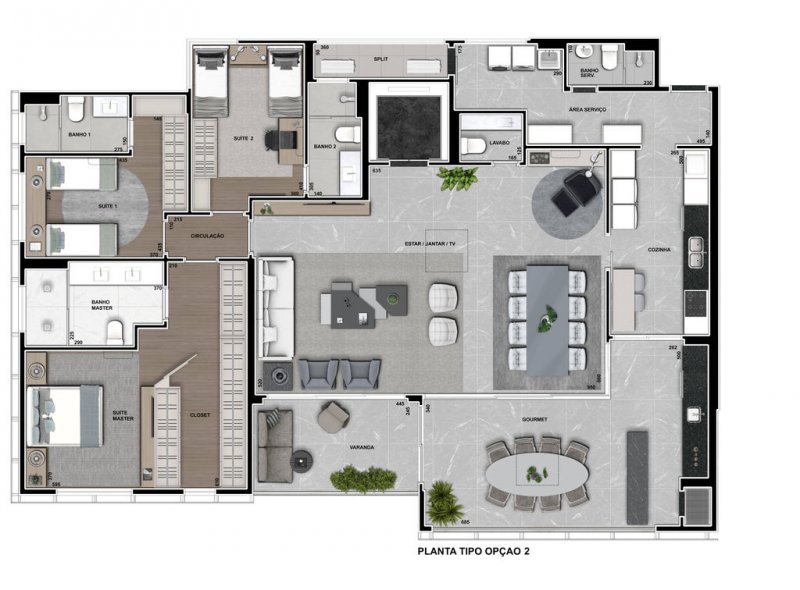 Apartamentos de alto padrão com infraestrutura moderna e sofisticado projeto de interiores e decoração, localizados em uma região privilegiada da cidade. Com opções de plantas de 3 ou 4 suítes, os apartamentos oferecem conforto e comodidade para toda a família.