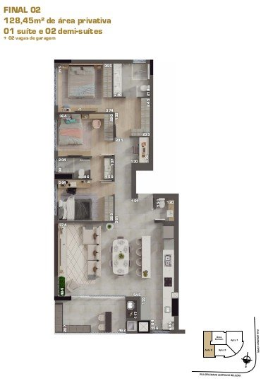 - Área Privativa: 128,45 m²