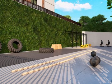 Sacada com Churrasqueira e ponto para pia com previsão de torneira elétrica