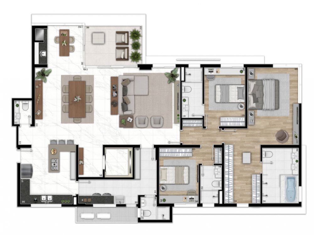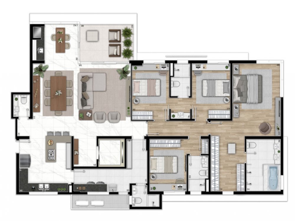 - Área Privativa: 200,57 m²