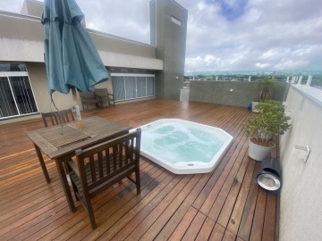 Áreas de lazer no terraço com vista panorâmica para o Água Verde, Centro e Batel