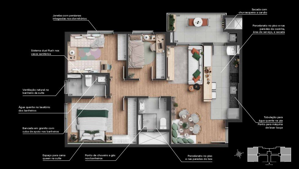 Todas as áreas entregues equipadas, decoradas e com utensílios