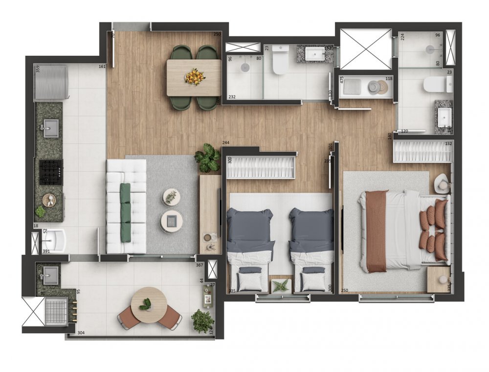 - Área Privativa: 57,78 m²