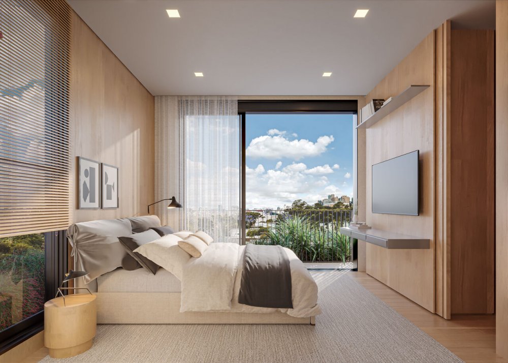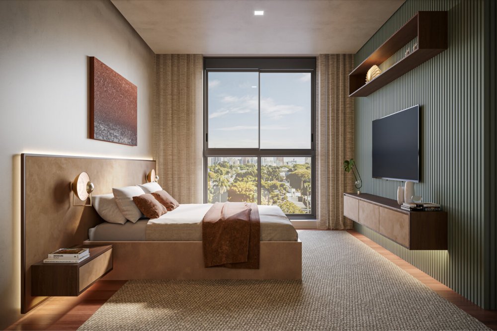 Persiana Motorizada Integrada nas Suítes: Controle de luz e privacidade ao seu alcance.