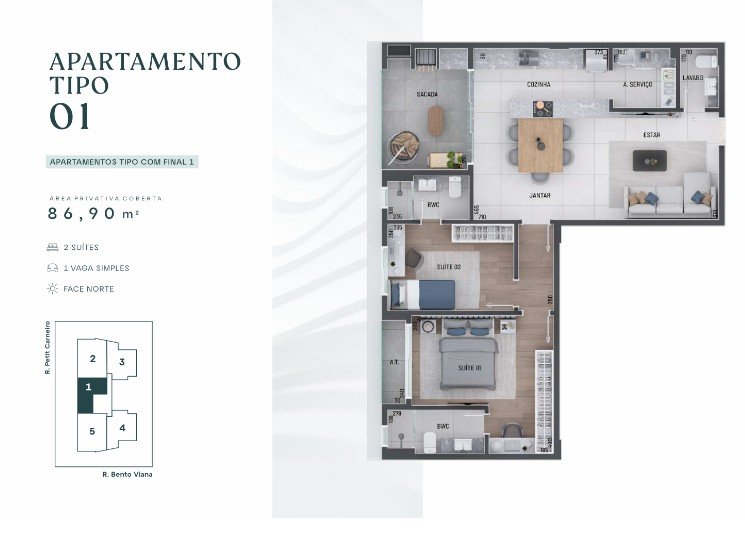 - Área Total: 86,90 m² (R$ 15.201/m²)