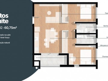 Apartamento à Venda com 2 dormitórios, sendo 1 suíte, 61m²