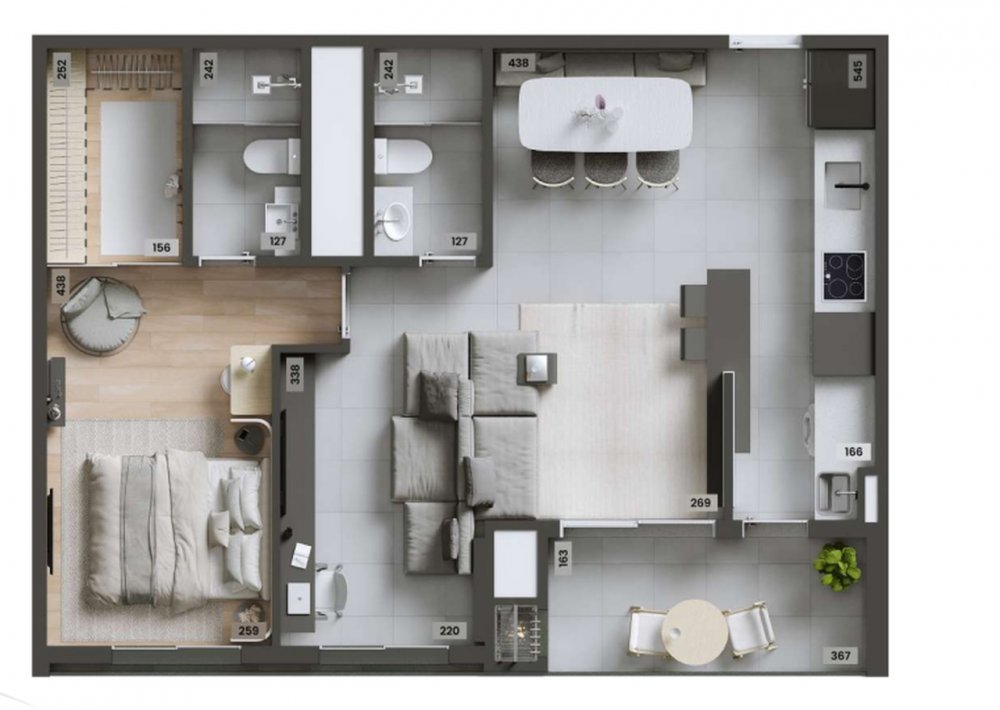 Sala ampliada (opcional): mais espaço para você receber amigos e familiares.