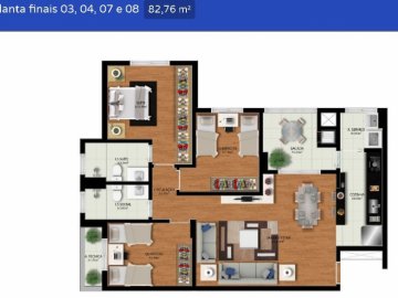 Apartamento à Venda com 3 dormitórios, sendo 1 suíte, 83m²