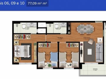Apartamento à Venda com 3 dormitórios, sendo 1 suíte, 77m²