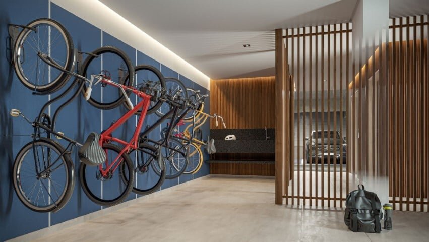 Bicicletário com compressor para calibrar pneus e tomada de energia para bike elétrica: Infraestrutura completa para os amantes da bicicleta.