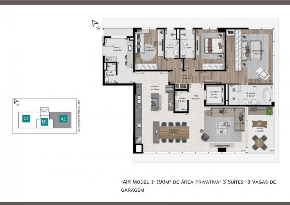 Apartamento à Venda com 3 dormitórios, sendo 3 suítes, 190,14 m²