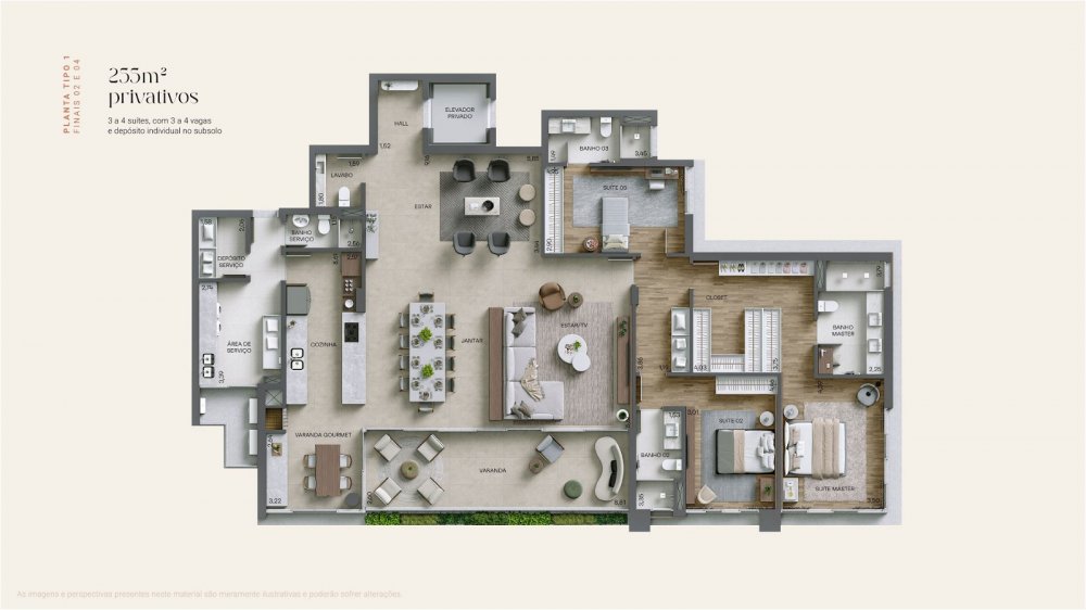Apartamento à Venda com 4 dormitórios, sendo 3 suítes, 255,64 m²
