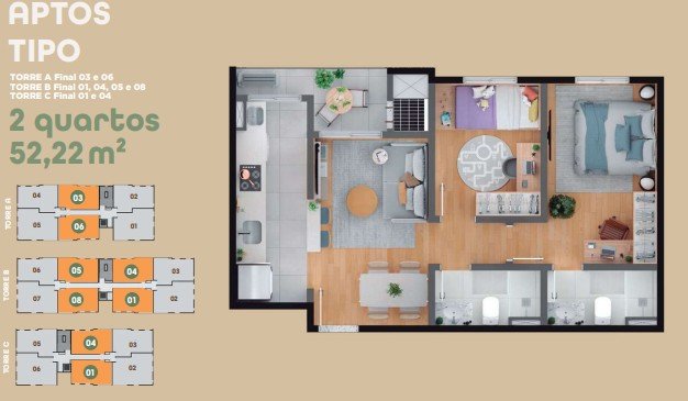 - Área Privativa: 52,30 m²