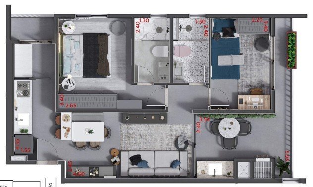 - Área Privativa: 60,54 m²