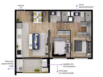 Apartamento à Venda com 2 dormitórios, sendo 1 suíte, 62m²