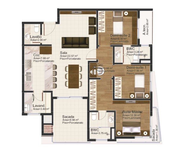 - Área Privativa: 103,03 m²