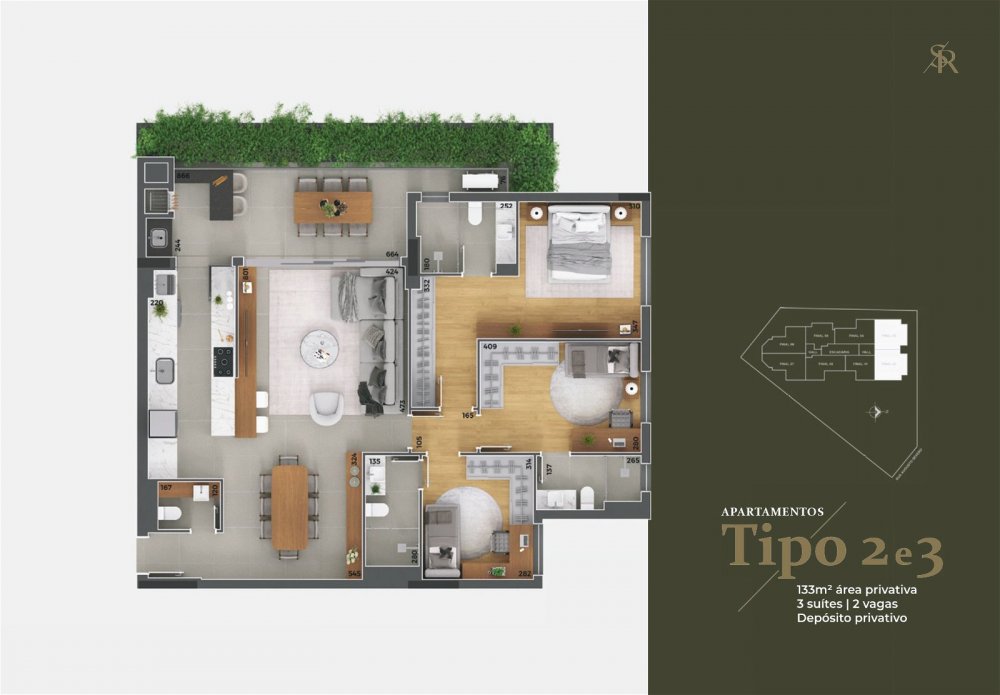 - Área Privativa: 133 m²