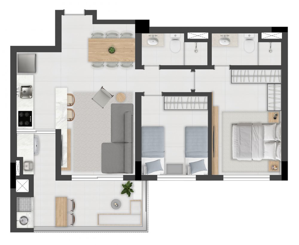 - Área Privativa: 71,82 m²
