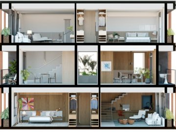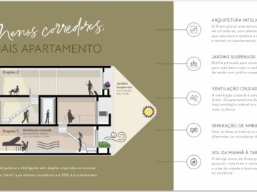 Com as áreas privativas e sociais dos duplex em pavimentos