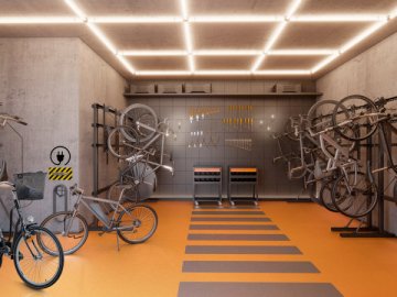 Bicicletas elétricas disponíveis aos moradores, mobilidade e praticidade para todos.