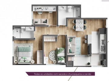 Apartamento à Venda com 3 dormitórios, sendo 1 suíte, 56m²
