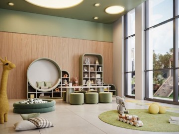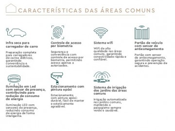 Academia, Água Quente, Brinquedoteca, Churrasqueira, Elevador, Garagem, Jardim, Piscina, Piscina Privativa, Sacada, Sacada com Churrasqueira, Salão de Festas