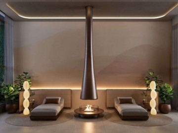 Acabamentos Premium: Bancadas em mármore com cubas de apoio ou semiencaixe e tratamento acústico nas tubulações.