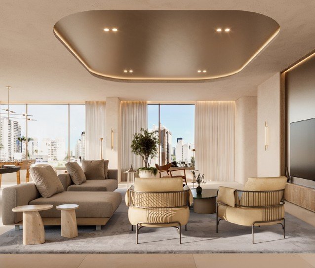 Conforto Contemporâneo: Forro de gesso com cortineiro e kit antirruído nas portas para uma atmosfera de tranquilidade.