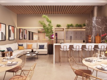 Academia, Água Quente, Bicicletário, Brinquedoteca, Churrasqueira, Elevador, Espaço Gourmet, Garagem, Piscina, Piscina Coberta, Portaria 24 Horas, Sacada, Sacada com Churrasqueira, Salão de Festas