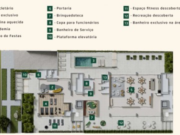 Academia, Água Quente, Bicicletário, Brinquedoteca, Churrasqueira, Elevador, Garagem, Piscina, Piscina Aquecida, Salão de Festas, Wireless