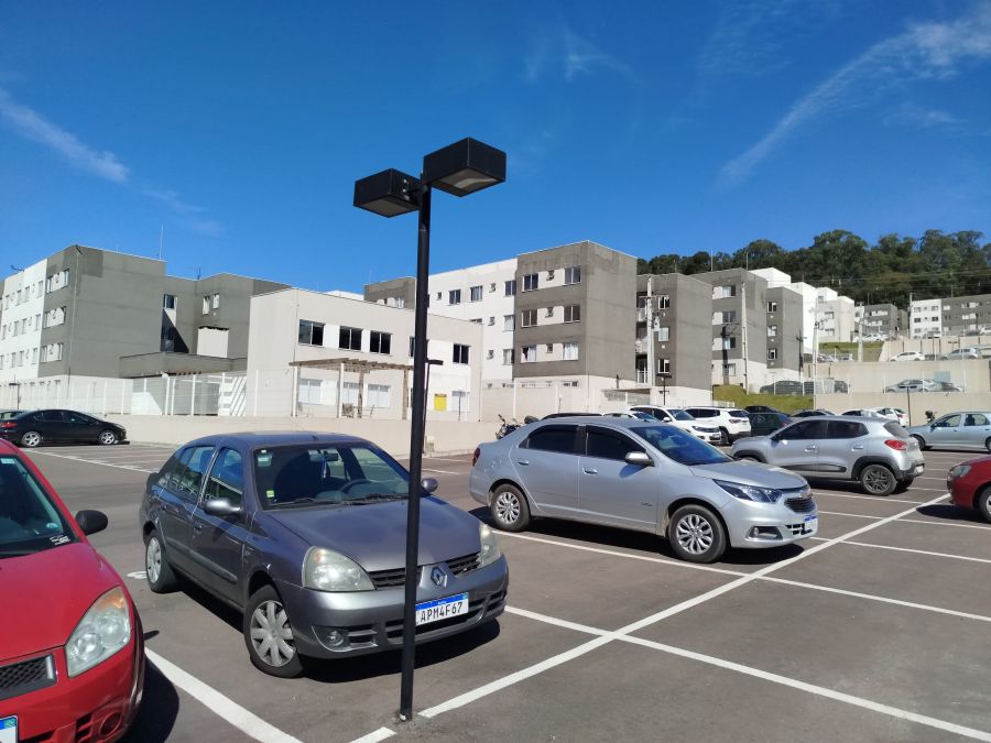 Situado no 2º andar, o apartamento possui 40,00 m² de área privativa, distribuídos de forma funcional para otimizar cada metro quadrado. A planta contempla dois dormitórios, sala de estar, banheiro social e uma vaga de garagem exclusiva. É uma unidade que alia praticidade e baixo custo de manutenção.