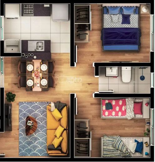 - Piso Laminado Nos Dormitórios e Sala