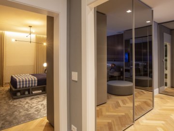 - Portas dos quartos com lâmina retrátil inferior para vedação acústica;