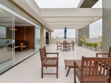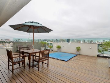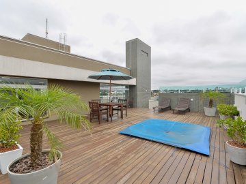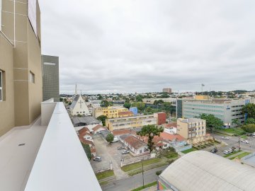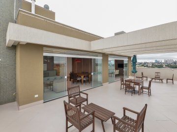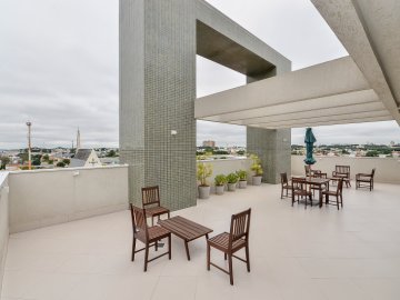 Áreas de lazer no terraço com vista panorâmica para o Água Verde, Centro e Batel