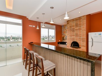 Sacadas com churrasqueira e guarda corpo em vidro laminado