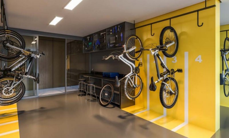 Oficina equipada para o bicicletário e uso doméstico