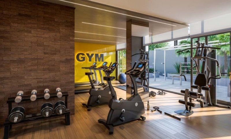 Academia equipada com espaço interno e externo