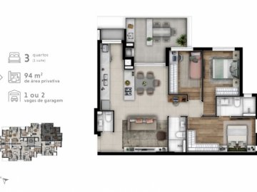Apartamento à Venda com 3 dormitórios, sendo 1 suíte, 94m²
