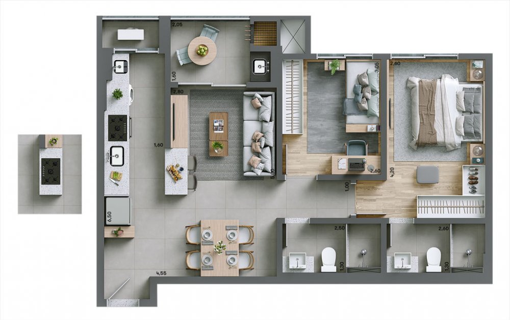 Apartamento à Venda com 2 dormitórios, sendo 1 suíte, 69 m²