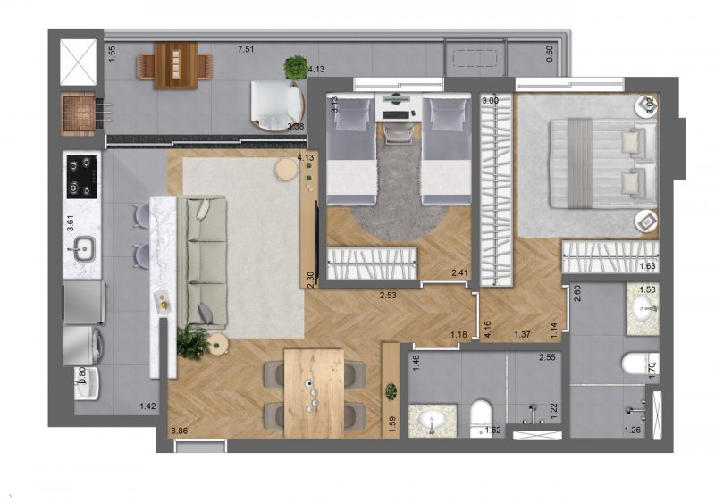 - Área Privativa: 68,26 m²